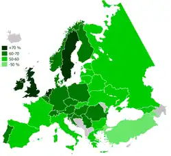 54% van de Europese bevolking is in staat om een gesprek te voeren in een tweede taal. 25% zegt dat men twee vreemde talen genoeg beheerst om er een gesprek in te kunnen voeren. Toch stelt 46% van de ondervraagden naast de moedertaal geen andere taal te beheersen. Volgens een studie van Eurostat Europeanen en hun talen die in 2012 in de toen 27 tellende lidstaten van de EU werd gehouden, worden de volgende talen het meest gesproken in de EU. Het Duits is, met 16% van de Europese bevolking, de meest gesproken moedertaal in de EU. Het Engels is met 51% de bekendste taal.