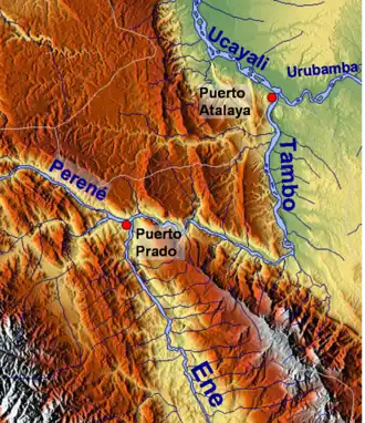 Op 10° 42′ ZB, 73° 45′ WL, verenigt de Tambo zich met de Urubamba en vormt zo de Ucayali.