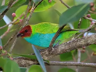 - Tangara cyanocephala – Roodnektangare