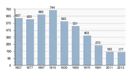 - Bron: INE, 1857-2011: volkstellingen