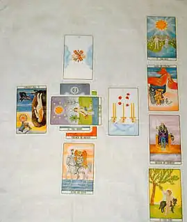 - ↑ Konraad,Sandor: Klassieke tarotleggingen, Uitgeverij Schors, 1989.