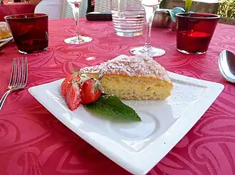 De taart bestaat uit een ronde plak gebakken deeg die horizontaal doormidden gesneden wordt. Beide plakken worden besprenkeld met sinaasappel- of rozenwater. Beide delen worden op elkaar gelegd met daartussen botercrème en banketbakkersroom. De taart wordt bestrooid met poedersuiker.