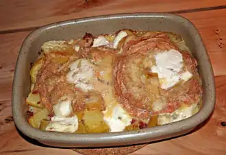 Tartiflette komt oorspronkelijk uit Frankrijk waar het wordt bereid met witte wijn en Reblochon, een kaas uit de Haute-Savoie.
