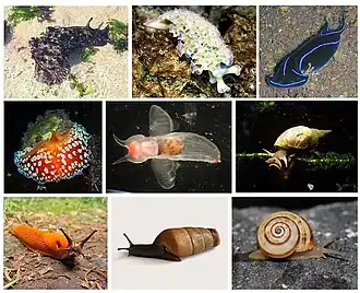 2. Elysia crispata 3. Chelidonura varians 4. Umbraculum umbraculum 5. Clione limacina 6. Lymnaea stagnalis 7. Arion rufus 8. Rumina decollata 9. Theba pisana | |||||||||||||