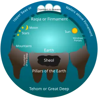 Volgens de Babylonische en Hebreeuwse scheppingsmythen was voor het ontstaan van het aardoppervlak alles water. Tiamat en Apsu in de Babylonische mythologie, in de Hebreeuwse mythologie worden de wateren gescheiden door het firmament. Na de creatie van het aardoppervlak rustte de landmassa op pijlers op de oeroceaan (Psalm 104:5-6) of tehom.