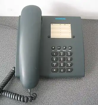 - Een kiesinrichting om bij een uitgaand gesprek het nummer te kiezen. Vanouds was dit een kiesschijf, sinds 1974 steeds vaker drukknoppen. In de loop van de 20e eeuw werden steeds meer telefoons aangesloten op een automatisch netwerk, zodat de kiesinrichting niet kan ontbreken.