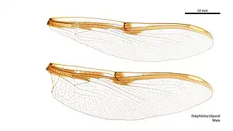 | Vleugel van Telephlebia tillyardi (mannetje) | |||||||||||||
