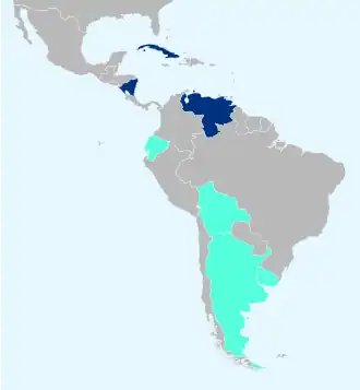 | Land | Bolivia, Cuba, Ecuador, Nicaragua, Uruguay en Venezuela | |||