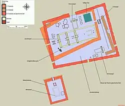 Het tempelcomplex is in tweeën gedeeld: het overgrote gedeelte is de tempel gewijd aan Amon, binnen de tempel is ook een subtempel voor Chonsoe. Separaat is er ook een tempel voor Moet.