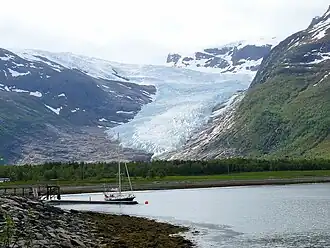 De Engabreengletsjer van het Svartisen ijsveld, kende in de 20e eeuw diverse perioden van aangroei maar werd tussen 1999 en 2014 ongeveer 200 m korter. De Engabreengletsjer kwam tot zeven meter boven zeeniveau en werd daarmee de laagst liggende gletsjer in Europa. De Briksdalsbreen werd korter.[25] Vier gletsjers van het Jostedalsbreen ijsveld, het grootste op continentaal Europa, werden van eind 2005 tot eind 2006 meer dan 100 m korter.[26]