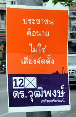De groeiende groep van Chuwit-aanhangers heeft vooral gevolgen voor de campagne van de democraat Apirak Kosayodhin. De kandidaat Paveena Hongsakul zou hierdoor sterk staan.
