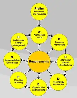 De ADM is het hart van TOGAF. Het is een methode om architecturen te ontwikkelen. De methode bevat de volgende stappen: