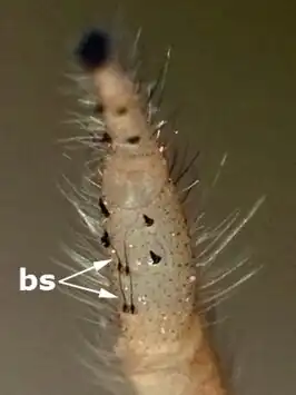 | Alle Thiodina-spinnen hebben twee paar bolle stekels (bs) op de eerste tibiae | |||||||||||||