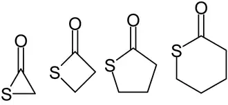 De thiolactonen vormen een klasse van organische verbindingen die kunnen opgevat worden als lactonen waarbij het zuurstofatoom in de ring vervangen is door een zwavelatoom. Thiolactonen worden net zoals lactonen aangeduid met een Griekse letter, die weergeeft hoeveel atomen in de ringen zijn opgenomen: zo telt de ring in een α-thiolacton 3 atomen, terwijl in een δ-thiolacton 6 atomen aanwezig zijn.