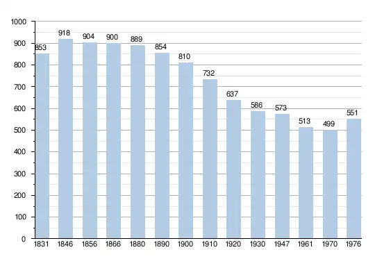 - Bronnen:NIS, Opm:1831 tot en met 1970=volkstellingen, 1976= inwonersaantal op 31 december