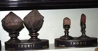 De naam van het mineraal thoriet is afgeleid van de samenstelling; het element thorium.