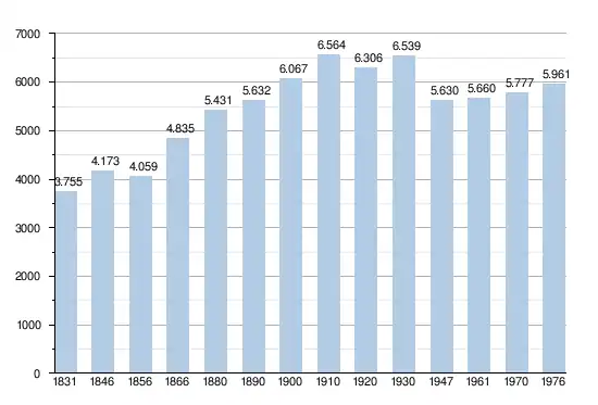 - Bron:NIS - Opm:1831 t/m 1970=volkstellingen; 1976= inwoneraantal op 31 december