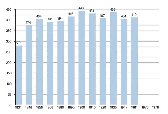 - Bronnen:NIS, Opm:1831 tot en met 1971=volkstellingen