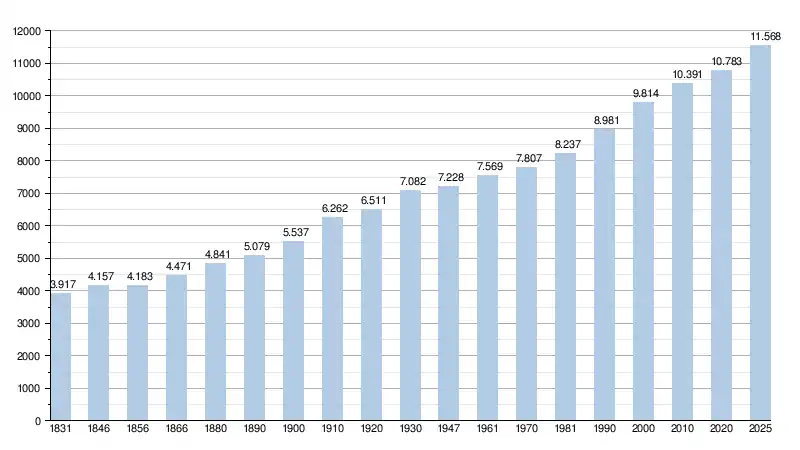 Alle historische gegevens hebben betrekking op de huidige gemeente, inclusief deelgemeenten, zoals ontstaan na de fusie van 1 januari 1977.