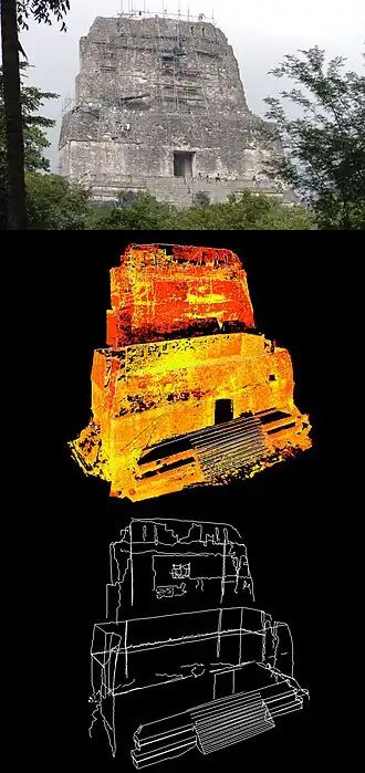 Het stadscentrum is volledig in kaart gebracht en besloeg een gebied groter dan 16 km² met ongeveer 3000 bouwwerken.[8] De topografie van de stad bestaat uit een reeks parallelle kalkstenen richels die boven het moerassige laagland uitstijgen. De belangrijkste bouwwerken van de stad concentreren zich in de hoger gelegen delen en zijn met elkaar verbonden door verhoogde wegen die de moerassen doorsnijden.[9] Het gebied rond Tikal is uitgeroepen tot het Nationaal park Tikal dat een gebied beslaat van 570 km².[10] Het werd opgericht op 26 mei 1955 onder auspiciën van het Instituto de Antropología e Historia en was het eerste beschermde gebied in Guatemala.[11][11]