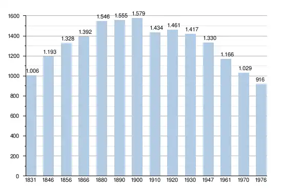 - Bronnen:NIS, Opm:1831 tot en met 1970=volkstellingen, 1976= inwoneraantal op 31 december