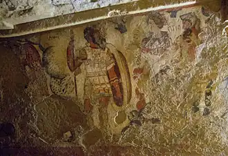 - ↑ Moretti, Mario (1974). Etruskische Malerei in Tarquinia. M. DuMont Schaumberg, Cologne, 118 – 122. ISBN 377-0105419.