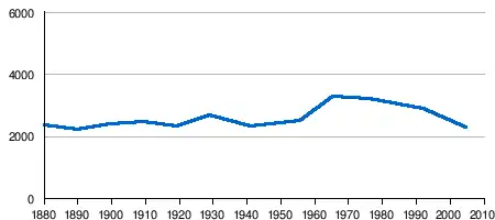 Onderstaande figuur toont het verloop van het inwoneraantal vanaf 1880.[1]