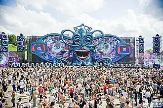 Toelichting: Het hoofdpodium van Tomorrowland is volledig afgebrand.[1]