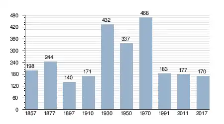 - Bron: INE, 1857-2011: volkstellingen