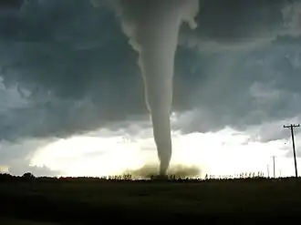 Een tornado (etymologie: Spaans, waarschijnlijk assimilatie van tornada, onweersbui, en tornar, draaien) of wervelstorm is een wervelwind met zeer grote windsnelheden, tot enkele honderden kilometers per uur, en een diameter van enkele tientallen meters tot een paar kilometer. Een tornado is meestal zichtbaar doordat waterdamp condenseert in de wervel of doordat materiaal van het aardoppervlak wordt opgetild.