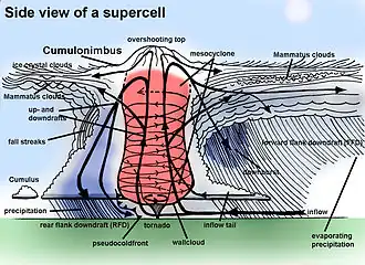 De rotatie rond een verticale as in een supercel ontstaat door het kantelen van de rotatie (of preciezer: vorticiteit) rond een horizontale as, die aanwezig is in een stroming waarin de windsnelheid met de hoogte verandert. Dit verklaart waarom voor de sterkste tornado's die met supercellen samenhangen, steeds een sterke verandering van de windsnelheid met de hoogte aanwezig is.
