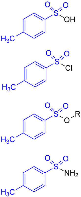 Tosyl is de gebruikelijke benaming van de functionele groep p-tolueensulfonyl of CH3-C6H4-SO2. Dat is een goede leaving group in de organische chemie; ze wordt ook gebruikt als beschermende groep voor alcoholen of amines tijdens organische syntheses, om ongewenste substitutiereacties op de hydroxylgroep of aminogroep te blokkeren.
