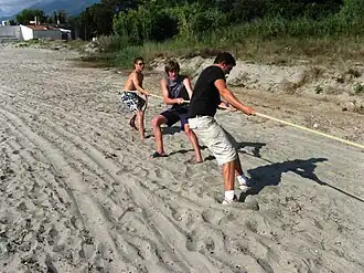 Touwtrekken is een sport, waarbij twee teams zo hard mogelijk aan de beide uiteinden van een sterk en dik touw proberen te trekken. Dit touw is gemarkeerd met vijf lintjes. In het midden een rood lint dat de startpositie aangeeft. Op vier meter aan beide zijden is er een lintje (geel in België en wit in Nederland) dat bepaalt hoever getrokken moet worden en op vijf meter van de middenlijn is er een lintje waarachter de eerste man moet plaatsnemen (zwart in België, blauw in Nederland). Het team dat het andere team zover trekt dat het viermeterlintje over de middellijn heen komt, heeft gewonnen.