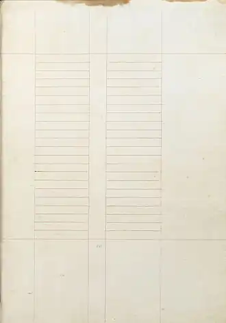 - ↑ Voorzien van kantlijnen en schrijflijnen.