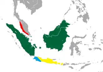 De soort komt voor in het westen van het Maleisisch schiereiland.