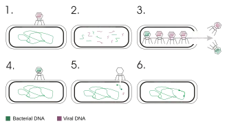 De bacteriofaag gaat zich in zijn gastheer vermeerderen, waarbij soms niet alleen het genetische materiaal van de indringer wordt vermeerderd, maar ook een stukje DNA van de bacterie vastgeplakt wordt aan dat van de faag. Bij infectie van een andere bacterie door deze faag wordt ook het DNA-stukje van de andere bacterie opgenomen in het genoom van de nieuw geïnfecteerde bacterie.