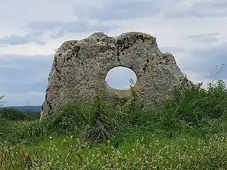 Te Traves bevindt zich een sluitsteen van een dolmen, met zielengat; Pierre percée genaamd.