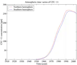 Trichloorfluormethaan (CFC-11) bleek - eind jaren '90 (20e eeuw) - de ozonlaag af te breken. Er kwamen milieuacties op gang die het publiek bewust moesten maken van dit grote nadeel. Zo gingen steeds meer landen er uiteindelijk toe over de productie te staken. In 2010 spraken landen middels het Protocol van Montreal af de productie helemaal te staken. Via metingen kon worden vastgesteld dat de concentratie CFC-11 in de atmosfeer gestaag afnam en dat het gat in de ozonlaag kleiner werd.