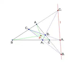De trilineaire poollijn van een punt , dat binnen een driehoek ligt, is de perspectiviteitsas van en van de ceva-driehoek in ten opzichte van punt . Het punt heet de trilineaire pool van . Lijn en punt heten trilineair poolverwant.