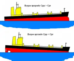 Een schip vertrimt om het zwaartepunt van de waterlijn, wat het tipping centre (TC) genoemd wordt. Omdat de scheepsvorm achter vaak voller is dan voor, ligt dit punt meestal achter de halve lengte tussen de loodlijnen, zodat de gemiddelde diepgang van een schip met trim meestal niet overeenkomt met een gelijklastig schip.
