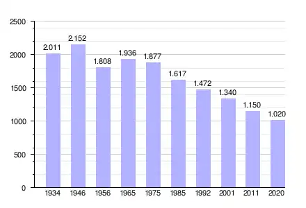| Bevolkingsontwikkeling tussen 1934 en 2020 |