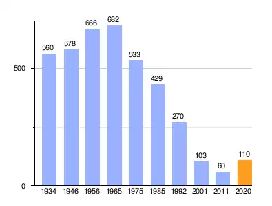 | Bevolkingsontwikkeling van Tsarkvitsa tussen 1934 en 2020 |