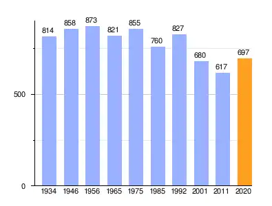 | Bevolkingsontwikkeling van Tsarkvitsa tussen 1934 en 2020 |