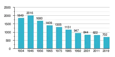 In de eerste volkstelling van 1934 registreerde het dorp 1.849 inwoners. Dit aantal nam toe tot een hoogtepunt van 2.016 inwoners in 1946. Sindsdien neemt het inwonersaantal af. Op 31 december 2019 telde het dorp 1.486 inwoners.[1]