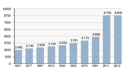 - Bron: INE, 1857-2011: volkstellingen