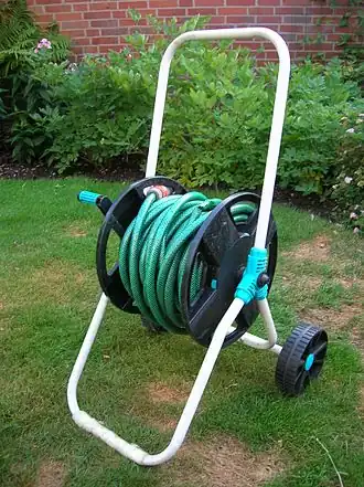 Een tuinslang is een flexibele buis waarmee water wordt toegevoerd voor toepassing van allerlei karweitjes om het huis.