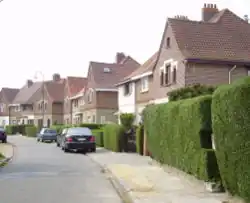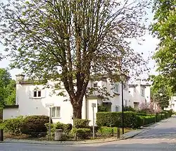 Vandaag moet je een beetje zoeken om de huizen van Tuinbouw te vinden. De huizen, verborgen achter bomen en hagen, zijn opgenomen in een nieuwe residentiële buurt, zelf ook omringd door hoge appartementsgebouwen.