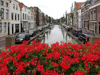 Aan weerszijden van de gracht bevindt zich een groot aantal historische gebouwen, waarvan er dertig zijn erkend als rijksmonument. Een van deze monumenten is het voormalige bankgebouw, dat tegenwoordig het Verzetsmuseum Zuid-Holland huisvest. Een ander noemenswaardig pand is de voormalige synagoge aan Turfmarkt 23. Sinds 1950 is het eigendom van de Vrije Evangelische Gemeente.[3] Het derde monumentale pand is het zogenaamde Admiraalshuis, de woning van de admiraals Jan den Haen en Roemer Vlacq. Ook de Trappenbrug ter hoogte van de Lange Dwarsstraat is een rijksmonument.