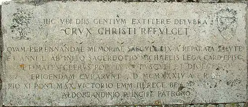 Op de top van de Tuscolo heuvel is in 1934, in de tijd van Mussolini, een altaar geplaatst met een ijzeren kruis van 19 meter hoog. De hoogte van het kruis is zo gekozen omdat het 19 eeuwen na de dood van Jezus Christus is gebouwd.