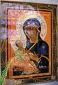 Op het altaar is een marmeren tegel bevestigd met een Latijnse inscriptie, waarin de naam van Mussolini is weggekrast.